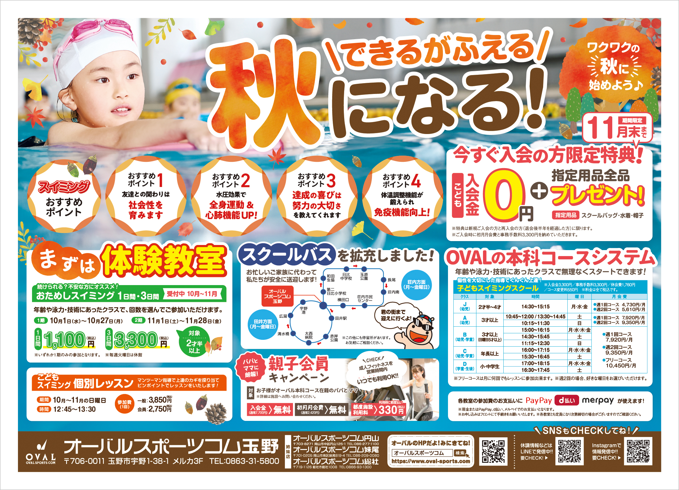 ◆おためしスイミング1日間・3日間【10月~11月】