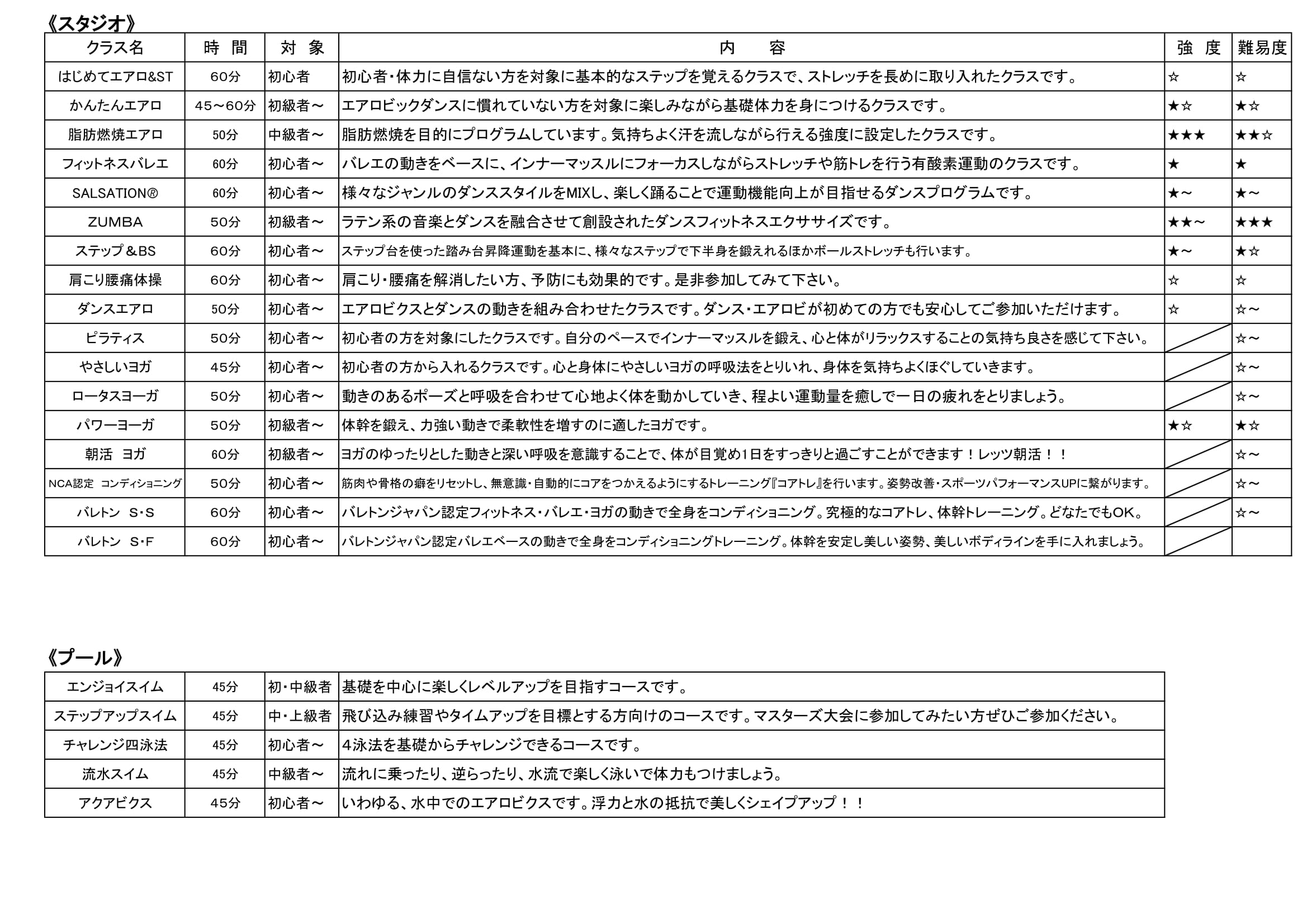 ■レッスンスケジュール/内容