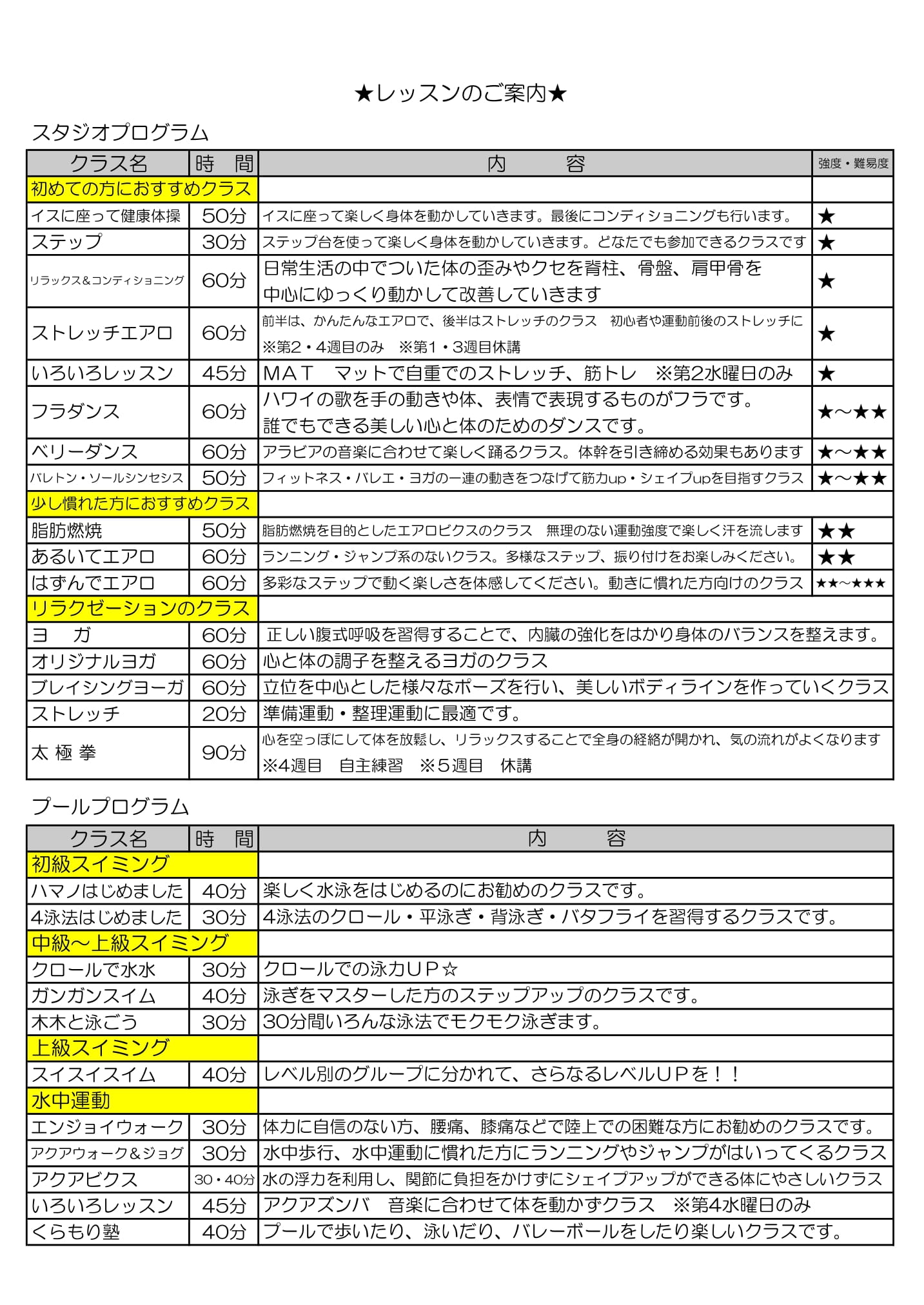 ■レッスンスケジュール/内容
