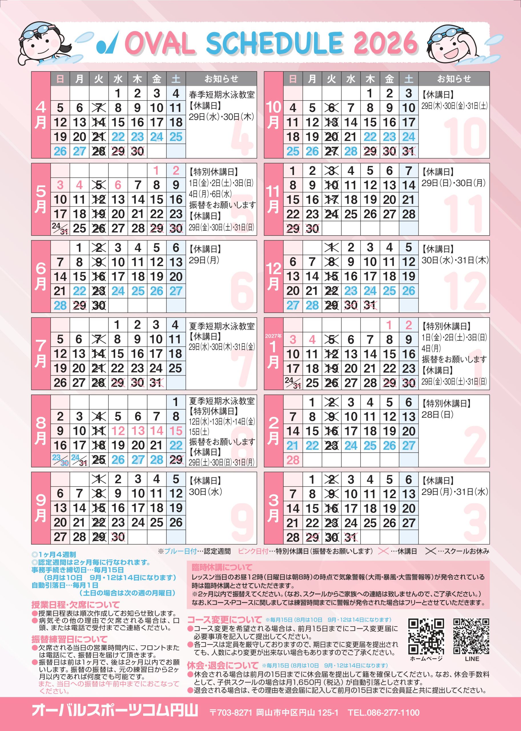 2026年スクールカレンダー円山