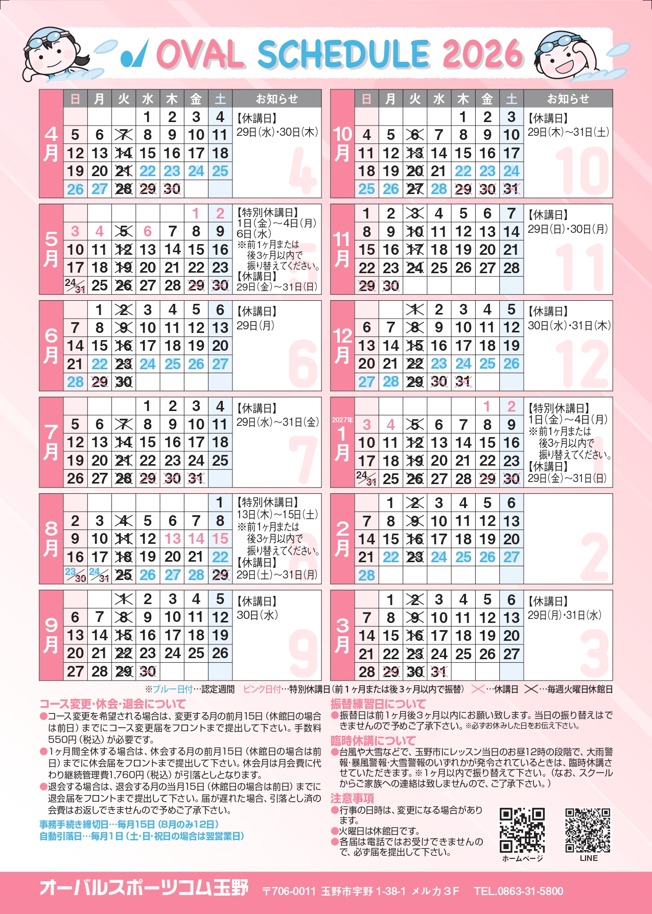 2026年スクールカレンダー玉野